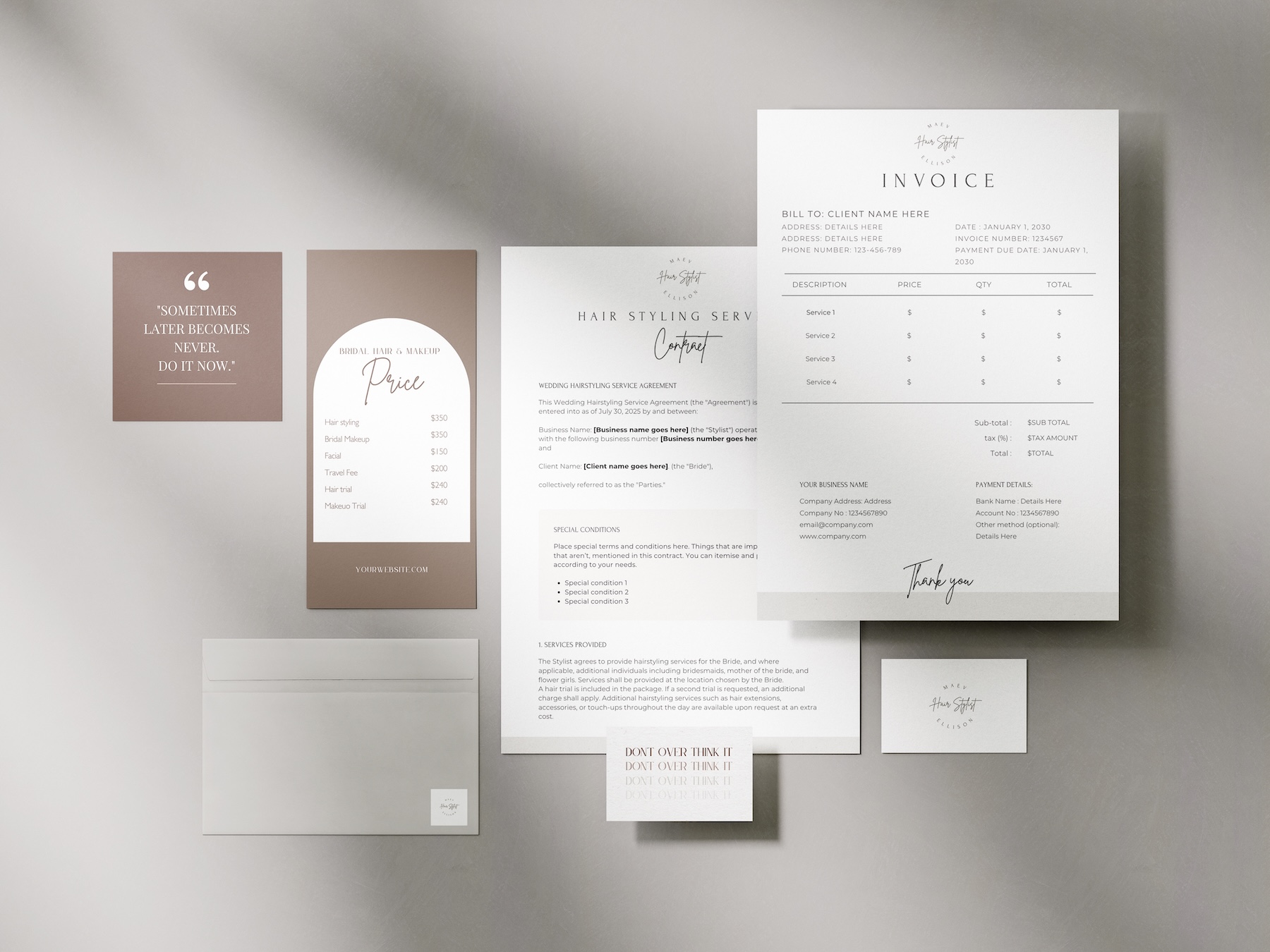 Here is a list for bridal hair stylist resources and templates that you can use for your business. There are templates, cheatsheets, tools and other resources. New templates and resources will be added monthly, to help you in your business and career. Our templates are editablie via Canva, you must have a canva account. You can login or create one here.